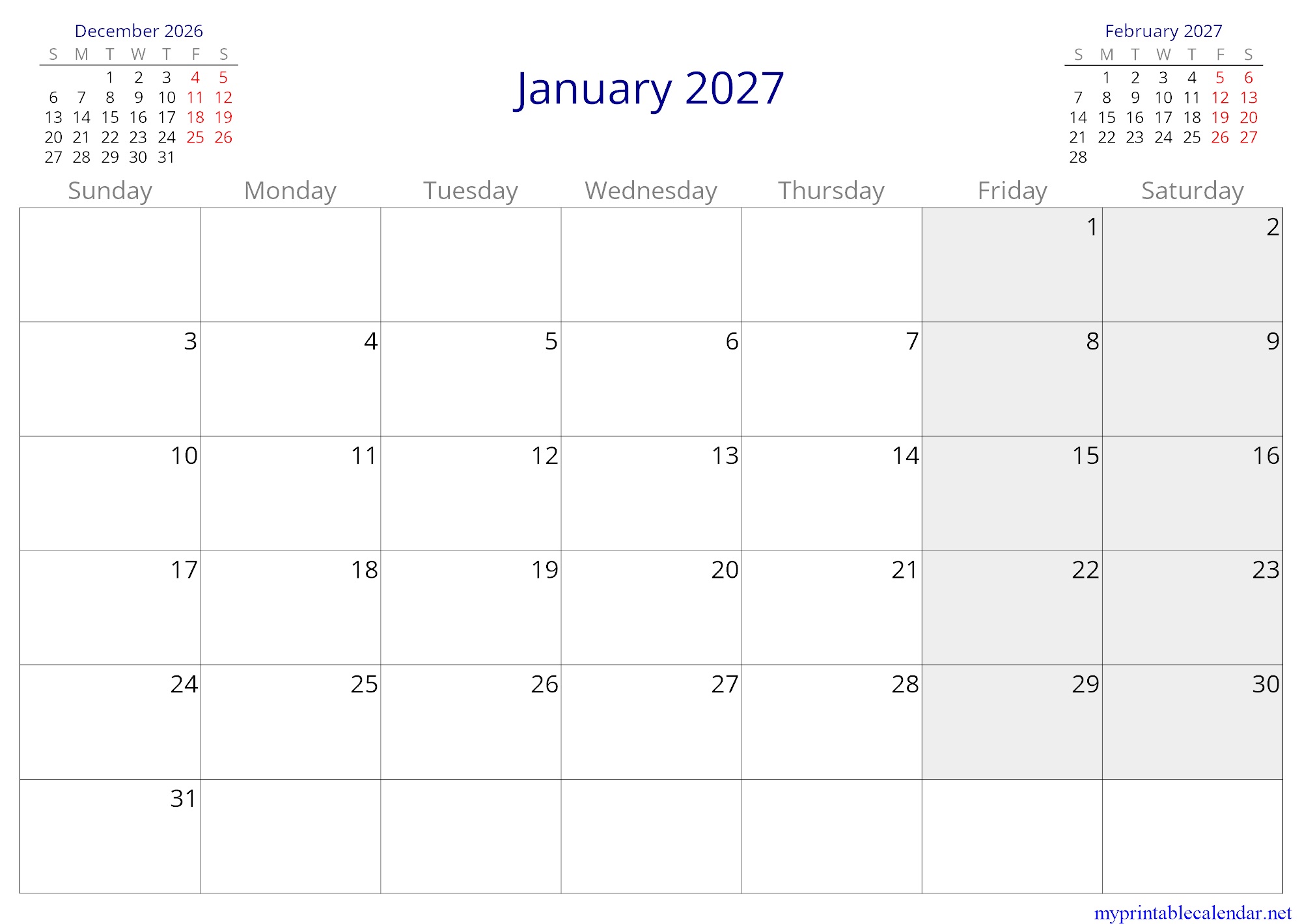 January 2027 monthly calendar, Bangladesh, in English jpg