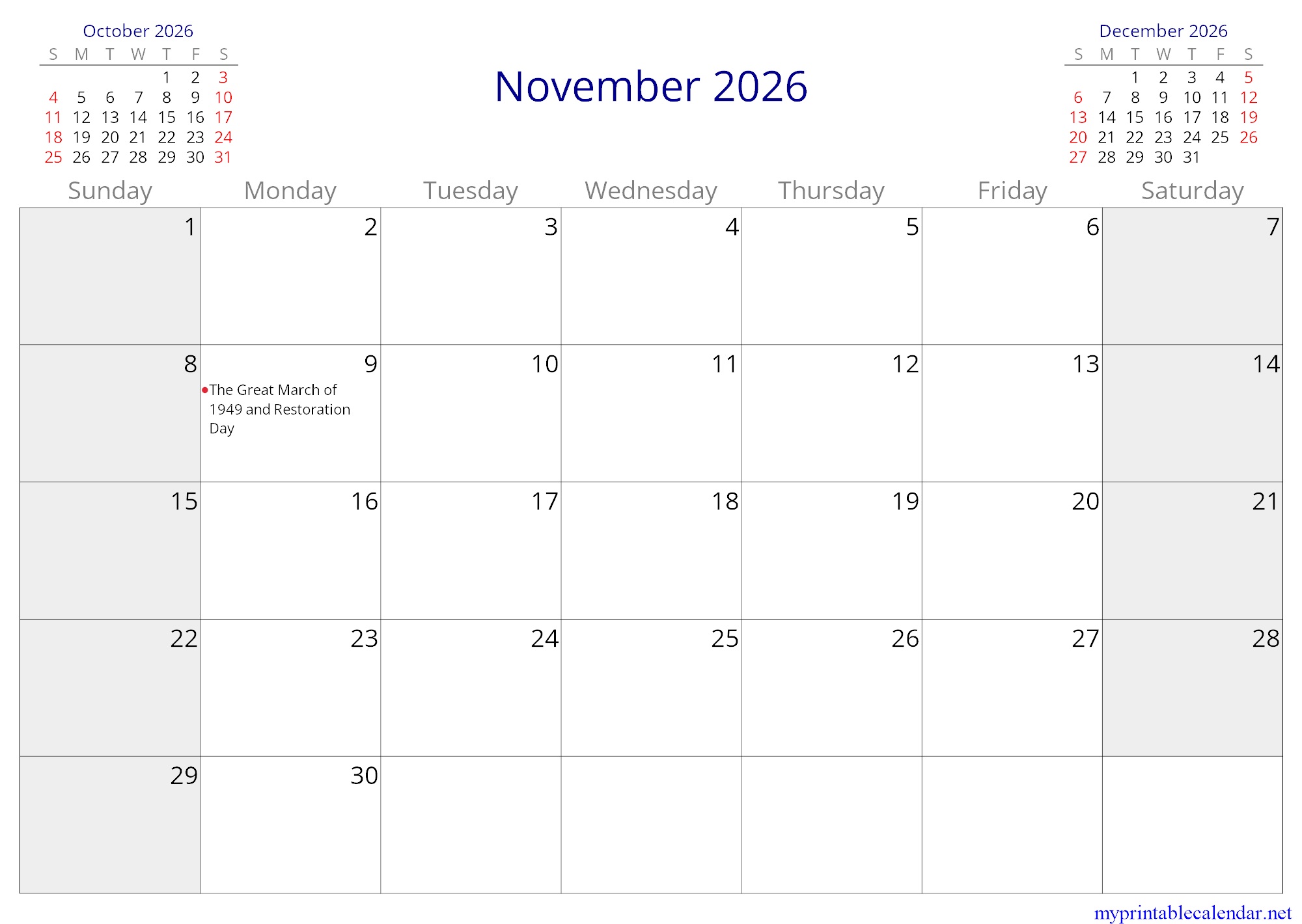 November 2026 monthly calendar, British Virgin Islands, English jpg