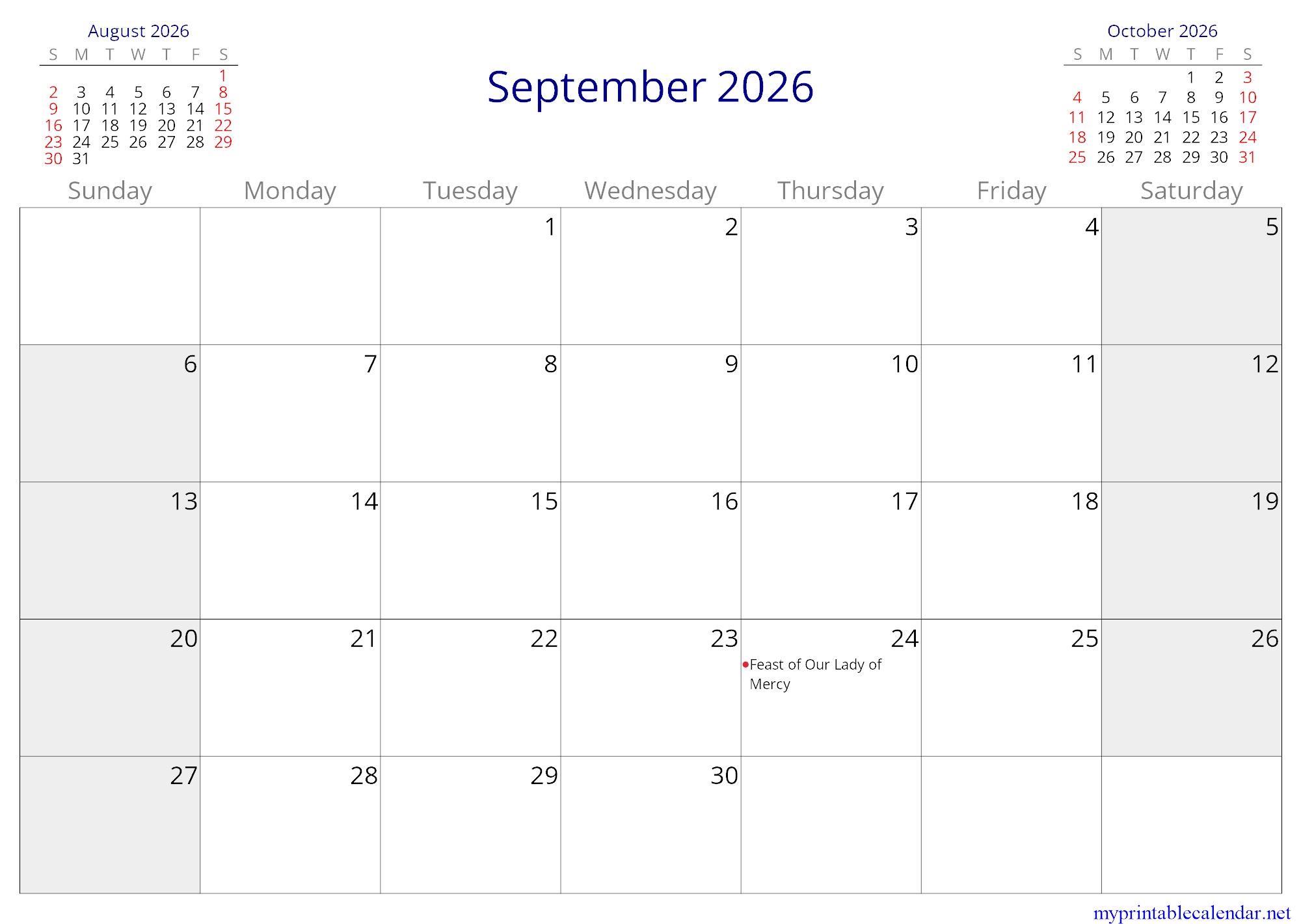 September 2026 monthly calendar, Dominican Republic, in English jpg