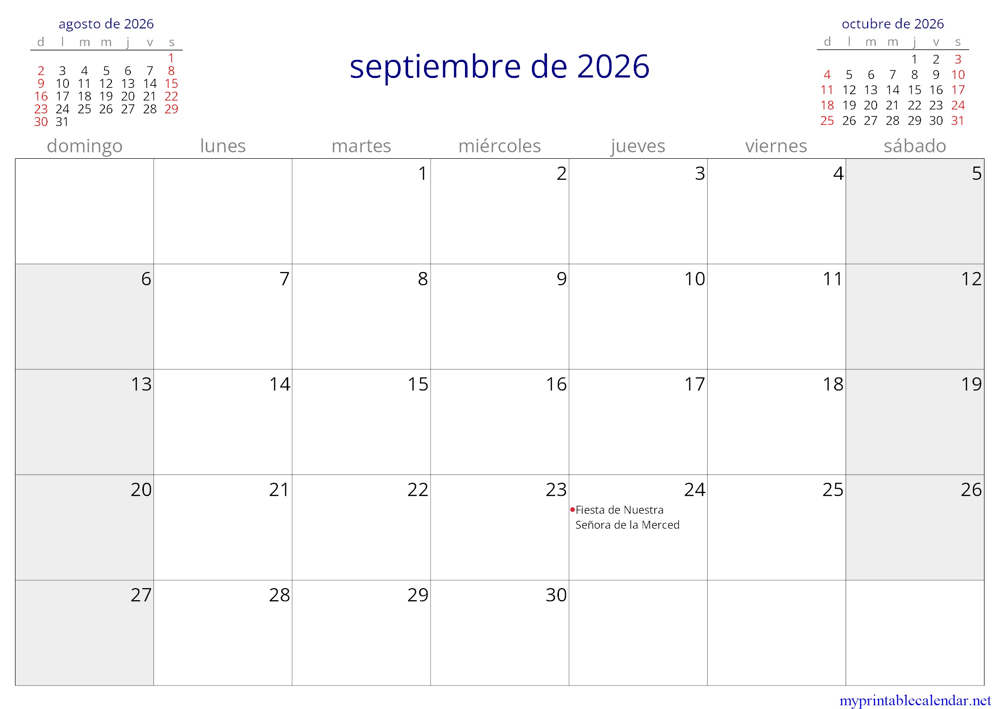 septiembre de 2026 monthly calendar, Dominican Republic, Spanish jpg