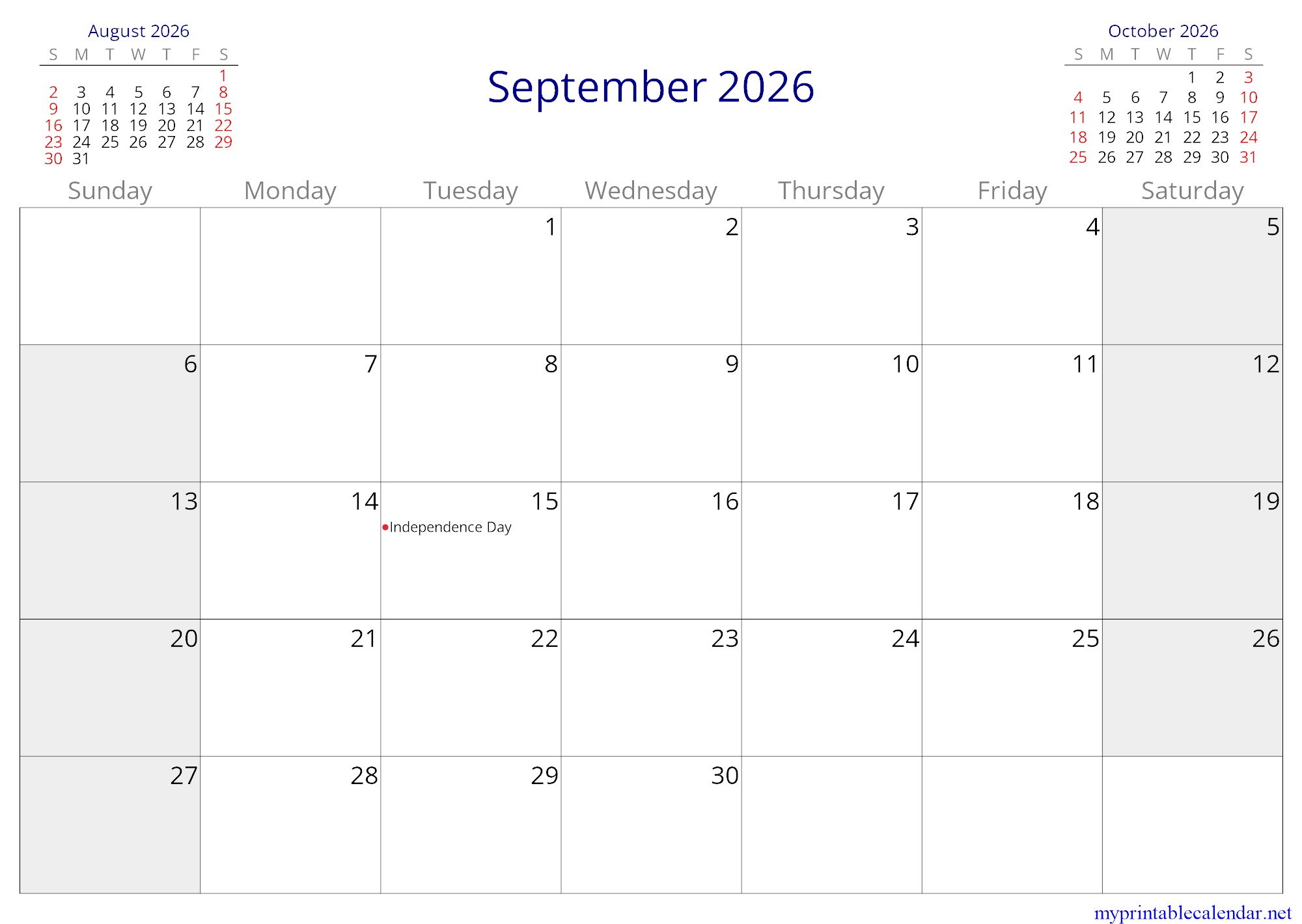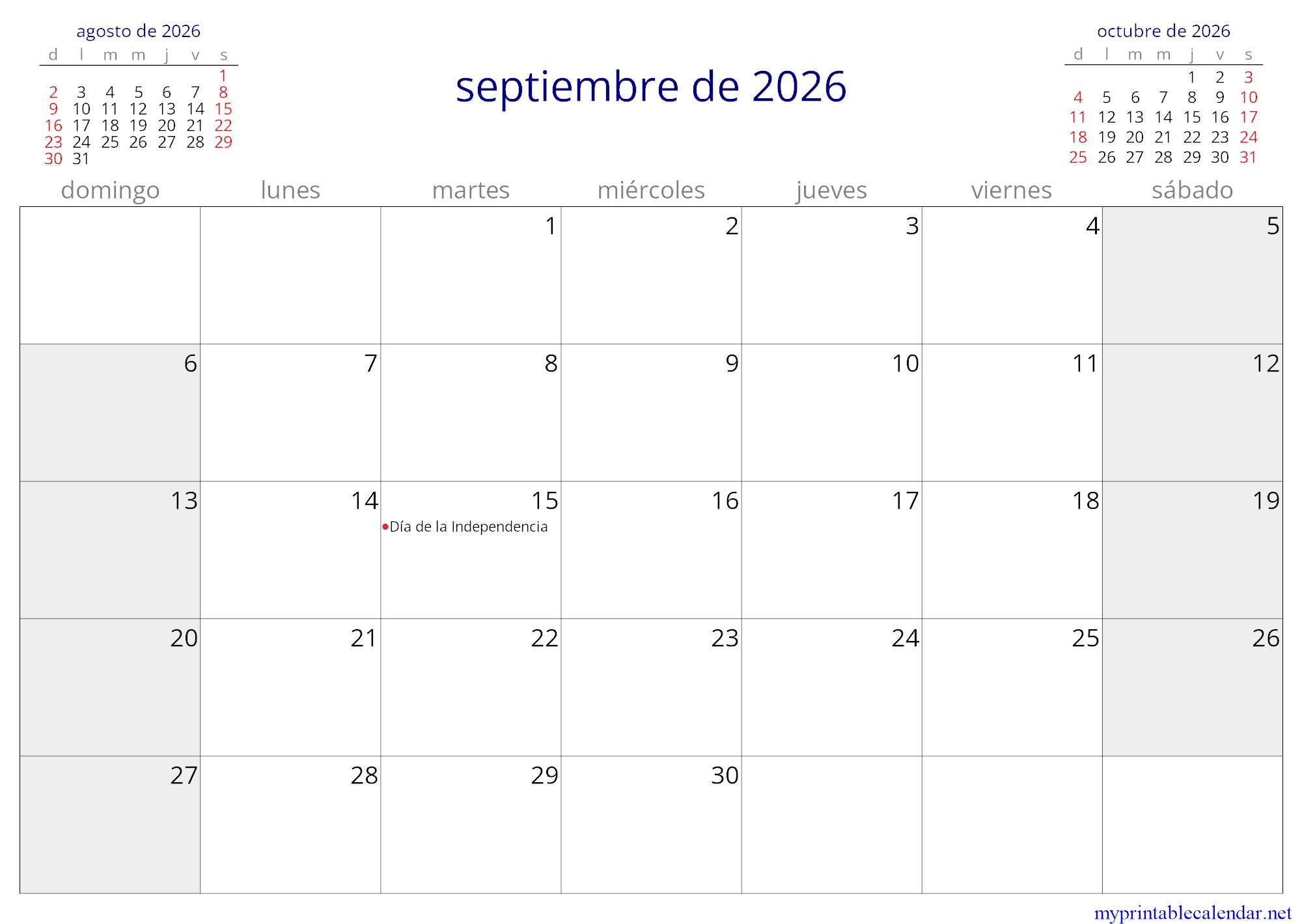 septiembre de 2026 monthly calendar, Guatemala, Spanish jpg