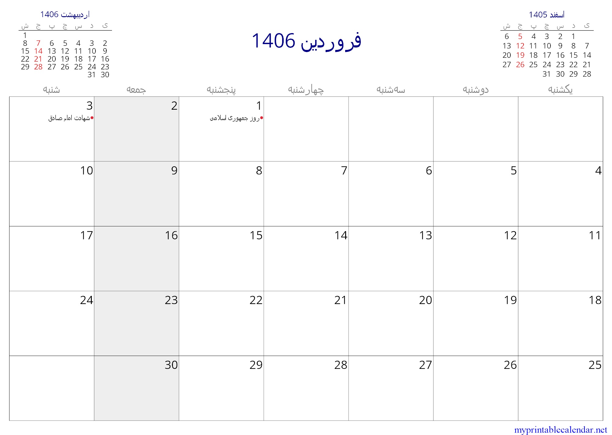1405 فروردین monthly calendar, Iran, Persian jpg