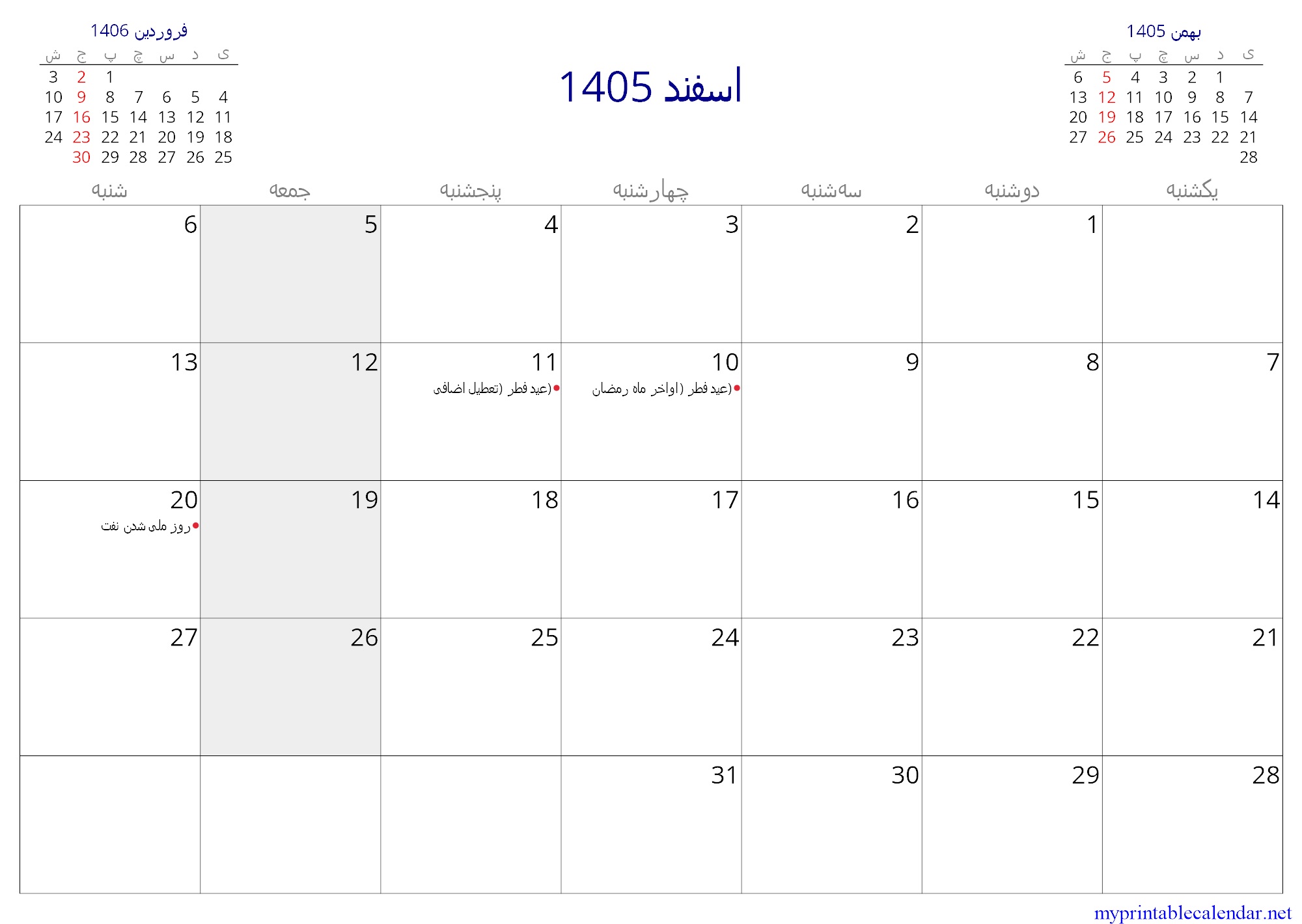 1405 اسفند monthly calendar, Iran, Persian jpg