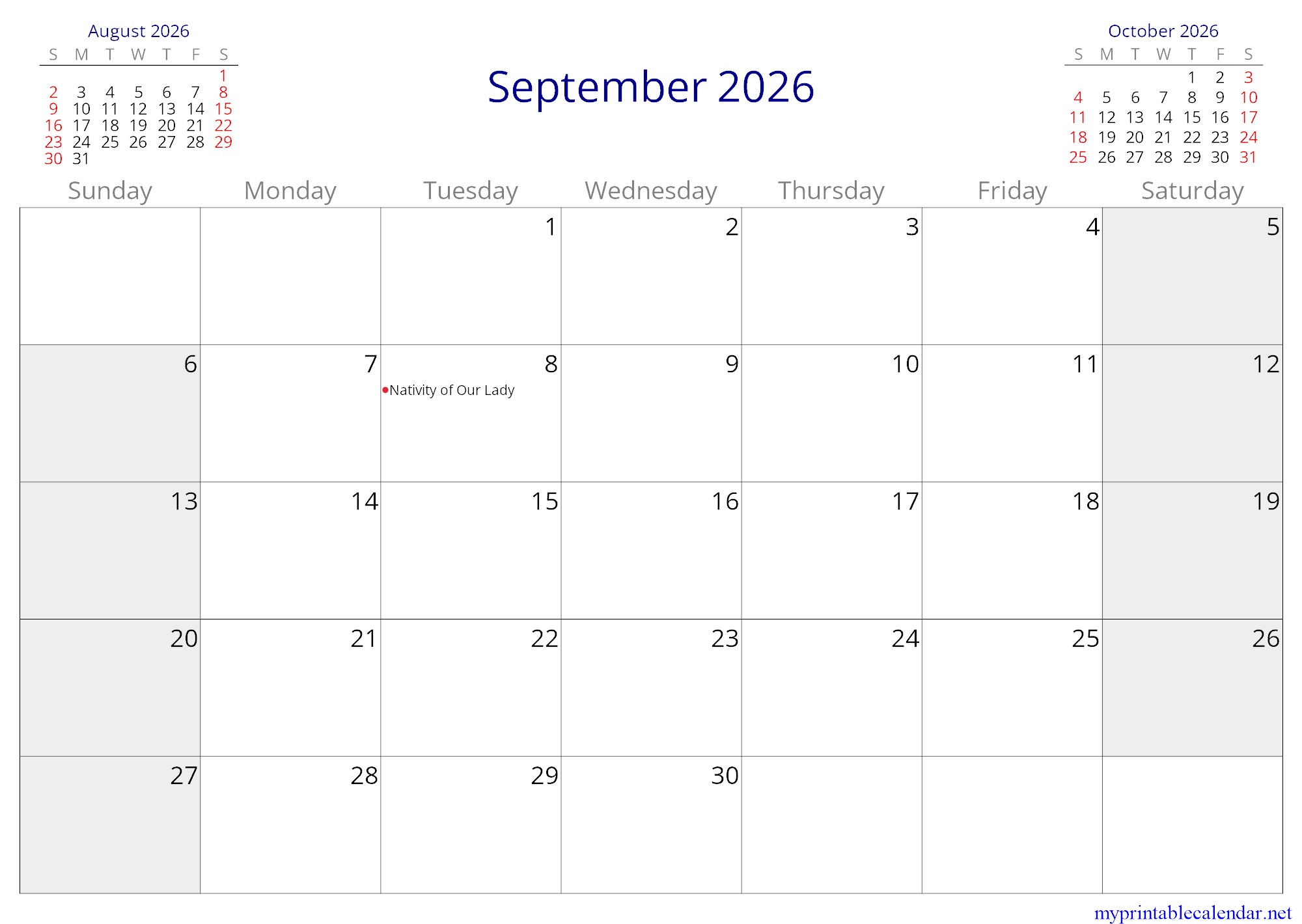 September 2026 monthly calendar, Liechtenstein, in English jpg