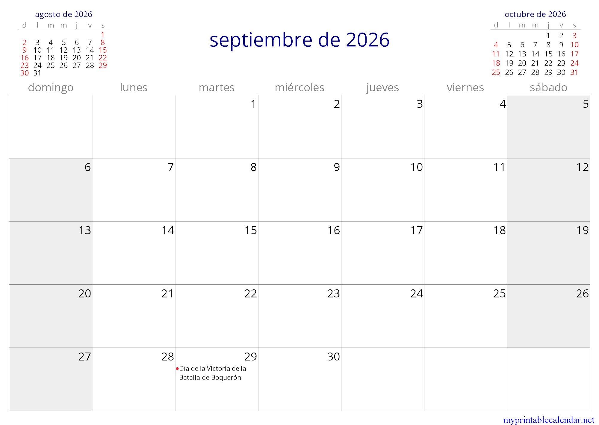 septiembre de 2026 monthly calendar, Paraguay, Spanish jpg