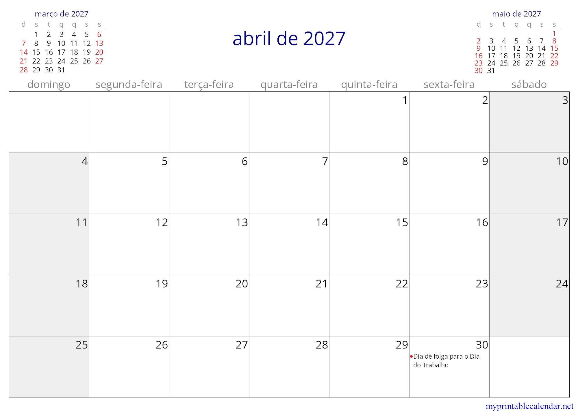 abril de 2027 monthly calendar, Sao Tome and Principe, Portuguese jpg