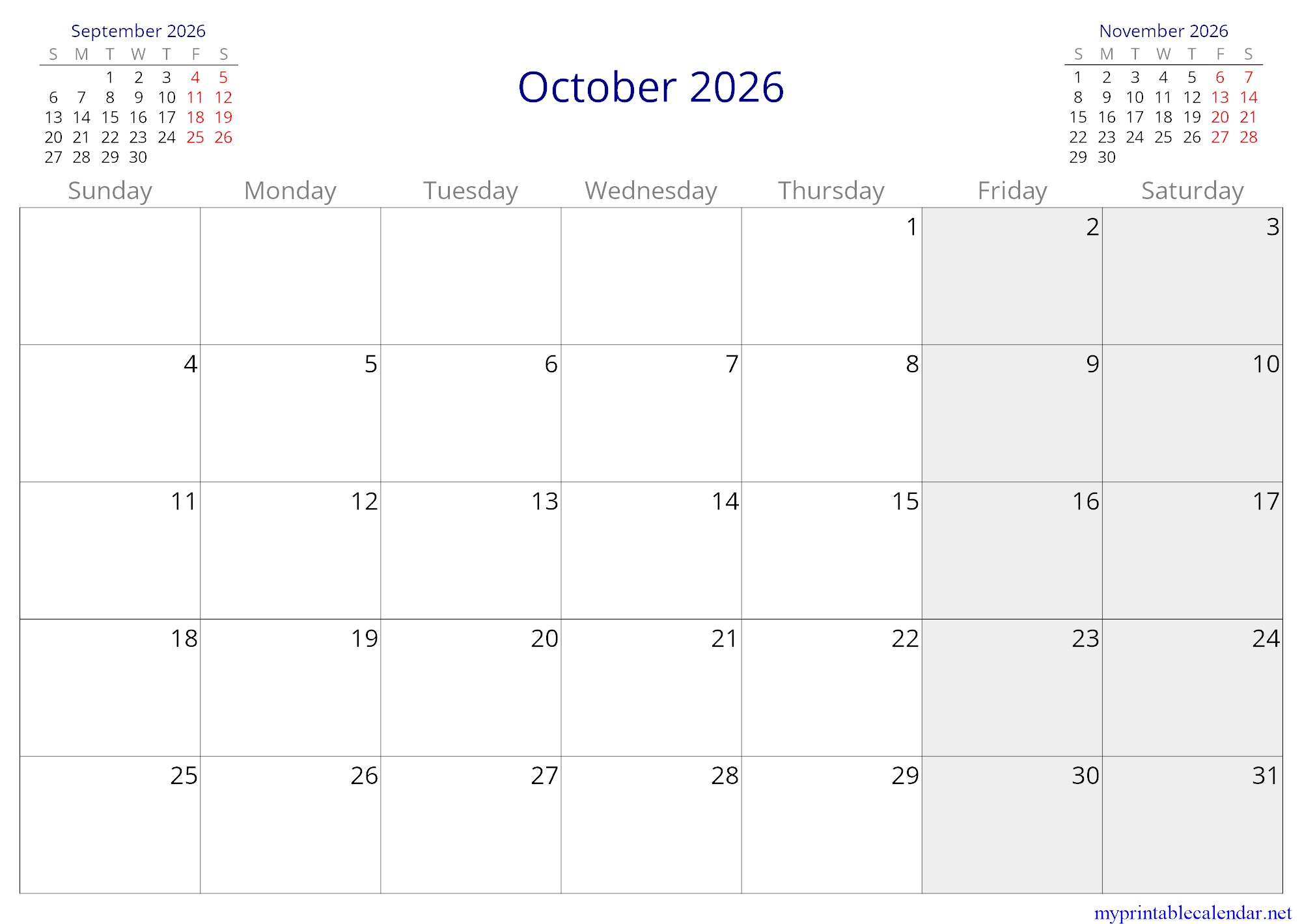 October 2026 monthly calendar, United Arab Emirates, in English jpg