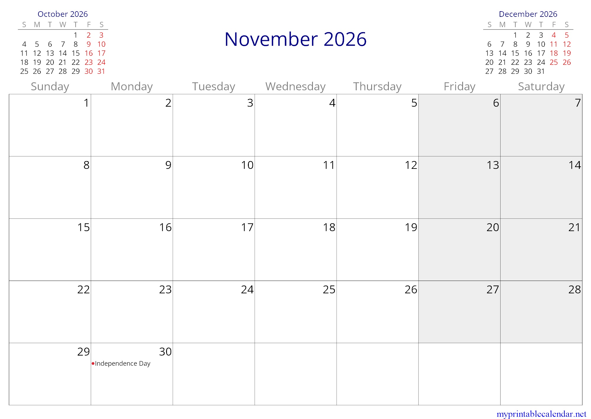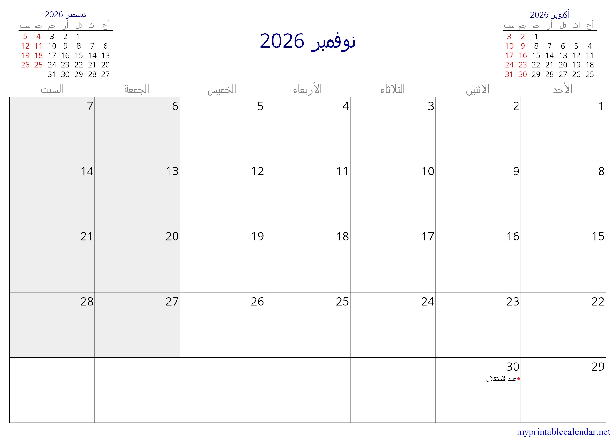 نوفمبر 2026 monthly calendar, Yemen, Arabic jpg