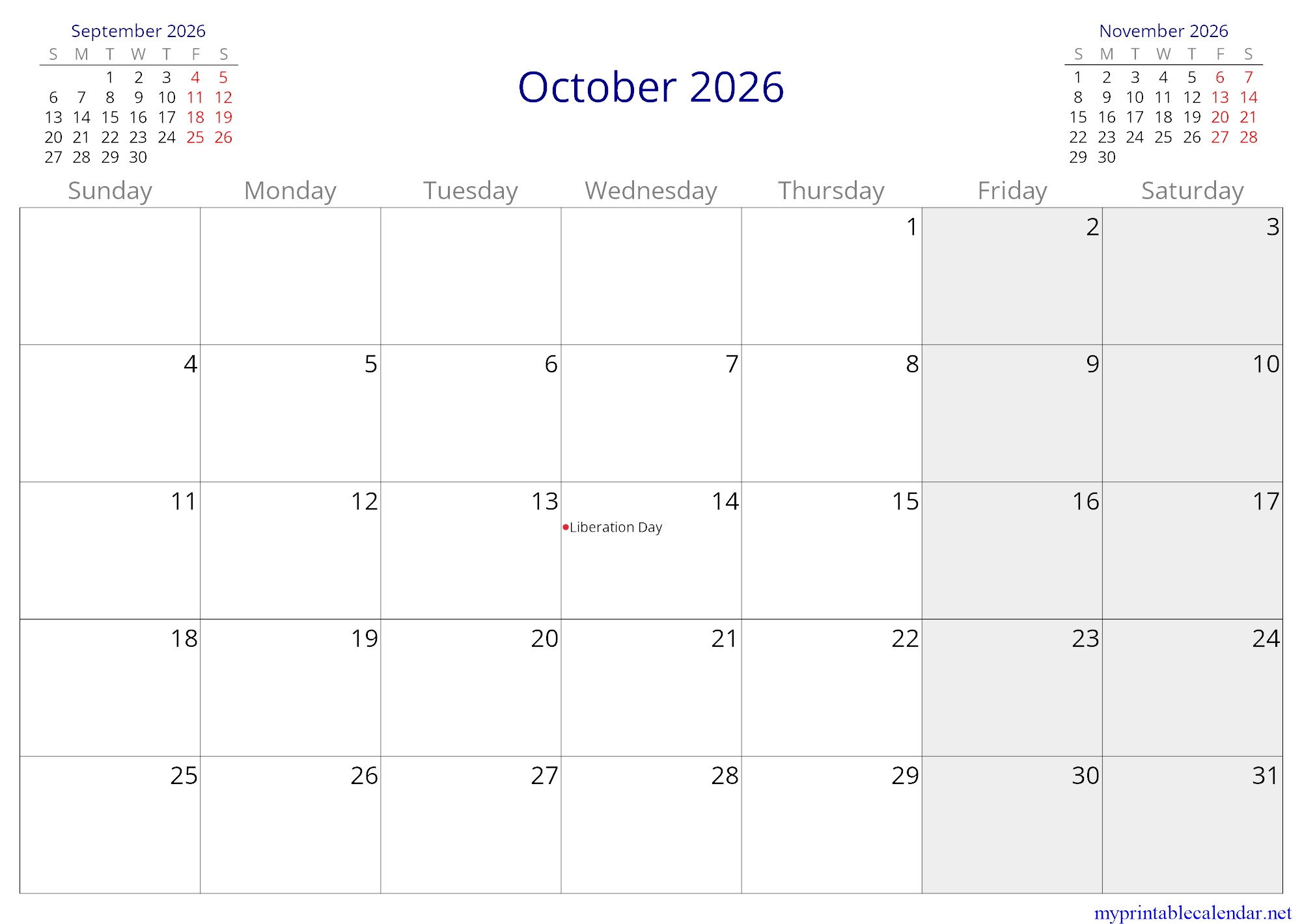 October 2026 monthly calendar, Yemen, in English jpg