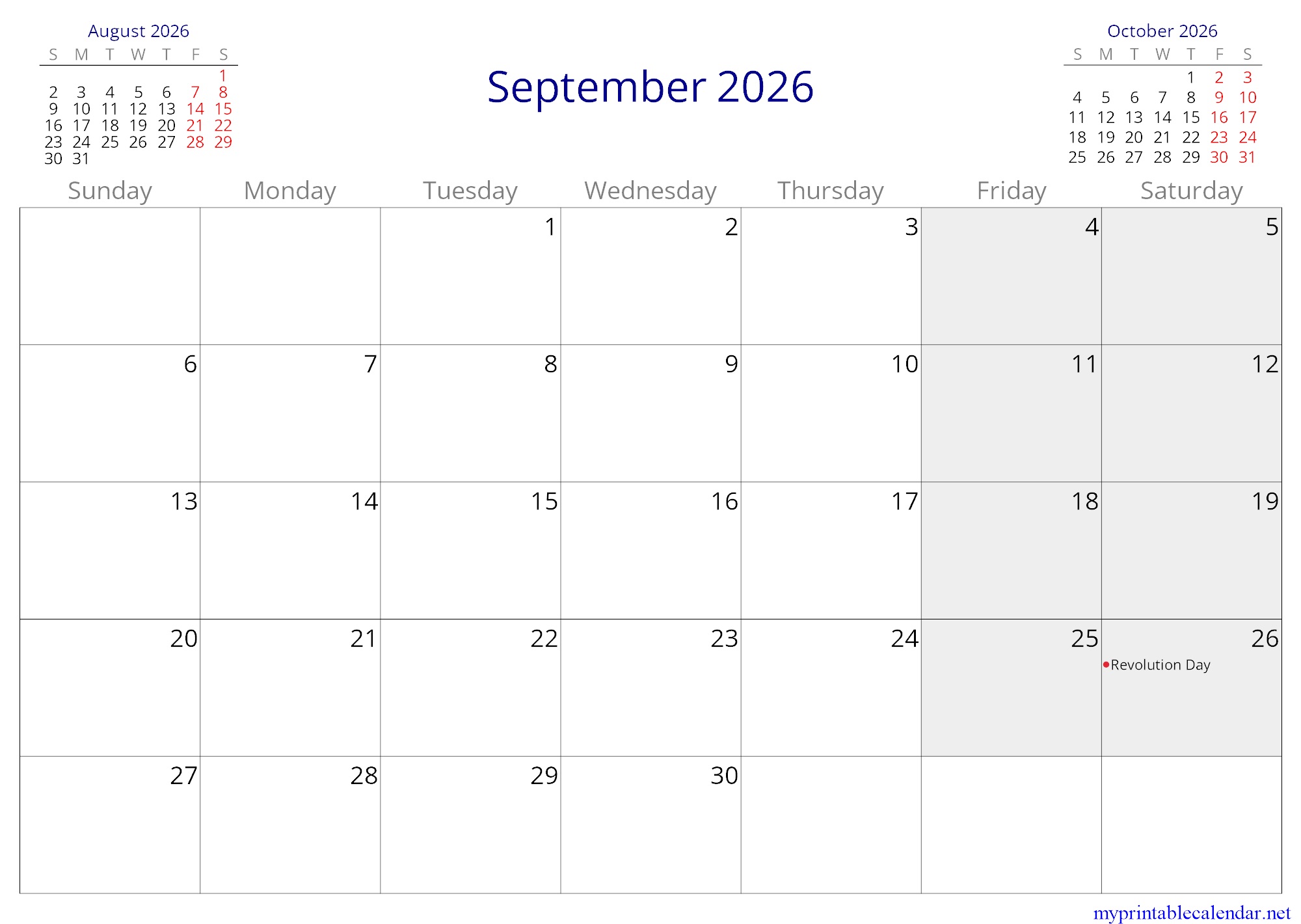 September 2026 monthly calendar, Yemen, in English jpg