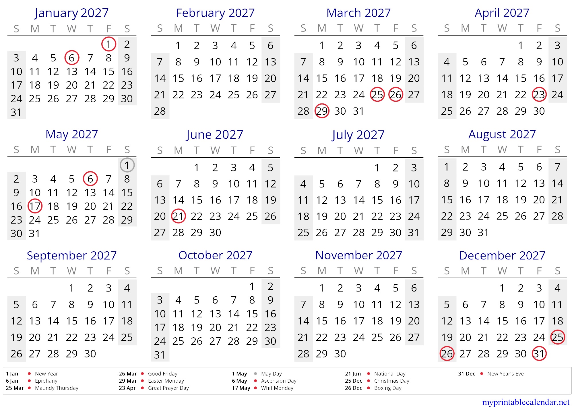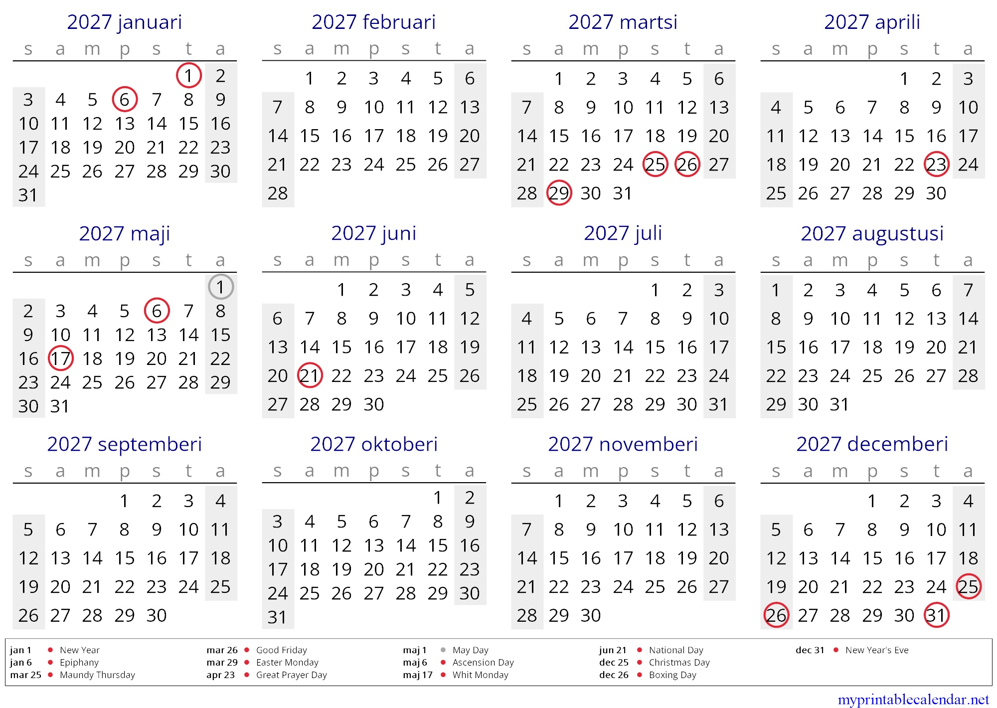 Yearly calendar for 2027, Greenland, Kalaallisut jpg