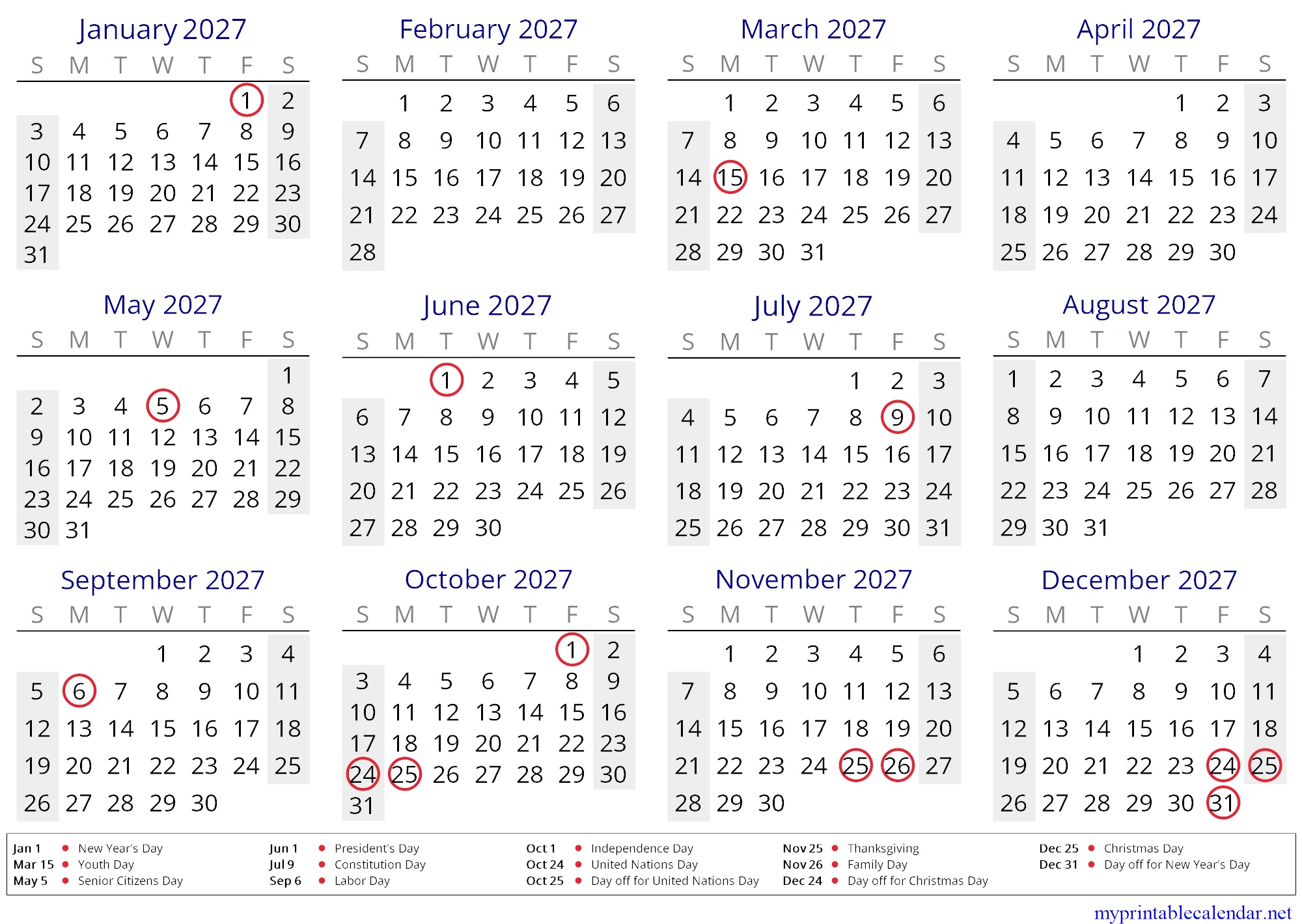 Yearly calendar for 2027, Palau, English (US, CA) jpg